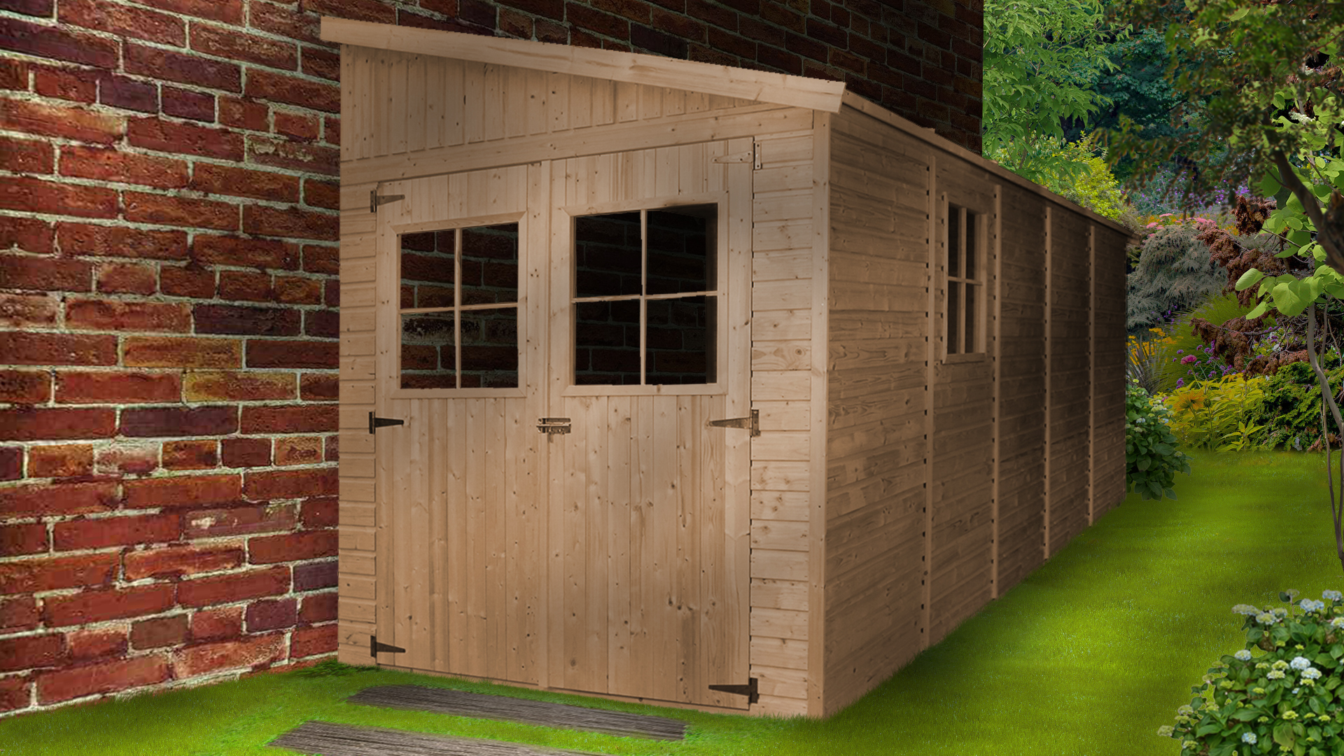 Medinis sodo namelis Timbela M341 – A243 x 513 x 216 cm / 10 m2